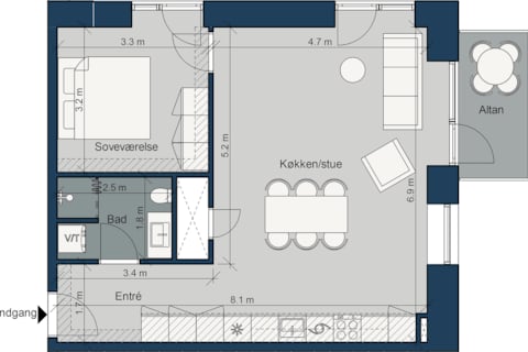 Moderne 2-værelses lejlighed på Blegkilde Alle